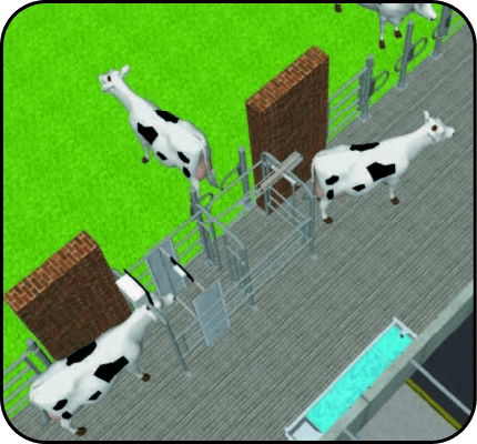La integración de las opciones de selección permite prescindir de vallas y puertas adicionales. El robot de ordeño está equipado con entradas y salidas a ambos lados, lo que permite seleccionar las vacas en la estación de ordeño.