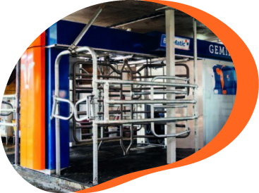 Nuestro exclusivo sistema de enganche trasero crea una experiencia de ordeño similar a la de una sala de ordeño contigua. Este enfoque centrado en la vaca proporciona beneficios directos para el ordeño, el bienestar animal y la protección del sistema. En el Gemini UP las vacas están relajadas, cómodas y libres de la distracción visual del movimiento de los brazos. Esto fomenta un ordeño frecuente y rápido y mantiene a cada vaca en su rutina normal.