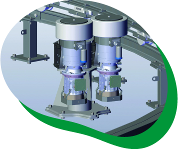 Las transmisiones se han reubicado en el interior de la viga en I y más cerca del centro del giratorio, lo que facilita la instalación y el mantenimiento de las transmisiones. El diseño proporciona un acceso sin restricciones a la parte inferior de la plataforma. El receptor y los conductos de leche también se han desplazado hacia el interior para facilitar el mantenimiento de los contadores.