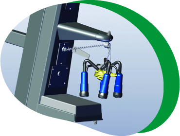 Las guías de cuerda y cadena están colocadas para favorecer la alineación de la unidad y el uso del soporte de la manguera. La guía mantiene el grupo y la manguera alejados de la bandeja del surtidor.