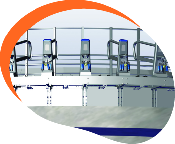 Una nueva apariencia compacta y moderna, ligeramente más delgada y compacta. El espacio adicional favorece al usuario y al técnico y ofrece una mejor visión del ordeño. El panel de automatización más pequeño está correctamente colocado para mayor comodidad del operador.